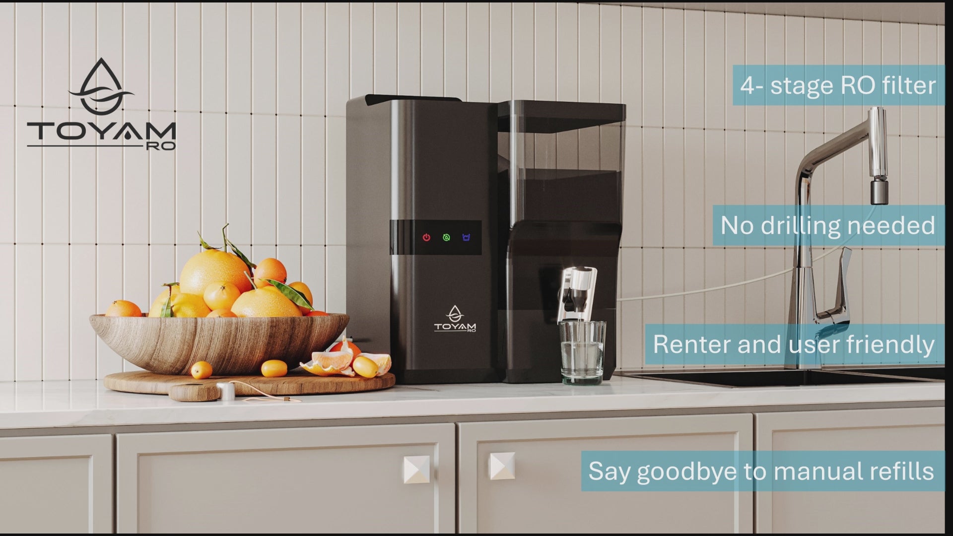 Meet Toyam RO, the game-changing countertop reverse osmosis (RO) system designed to eliminate the need for manual refills. With its innovative auto self-refill technology, Toyam RO ensures you always have filtered water ready—effortlessly.